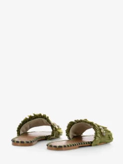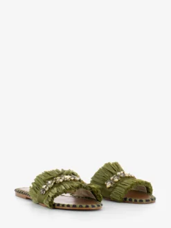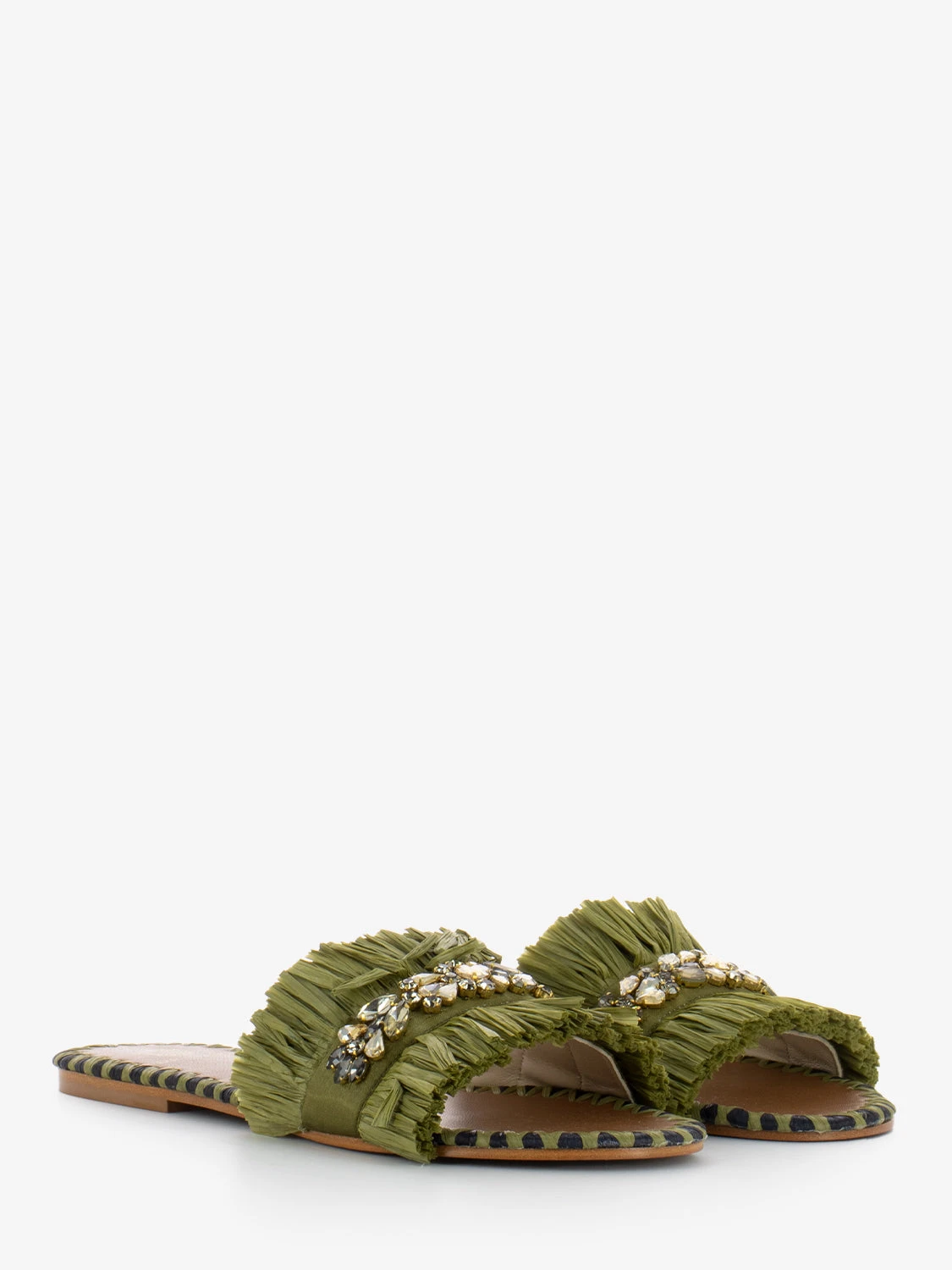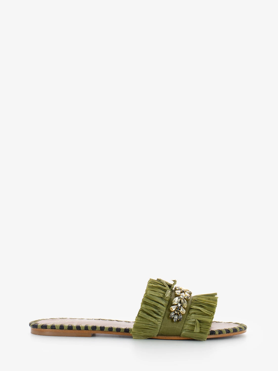 Fascia con frange in raffia e maxi strass applicati.