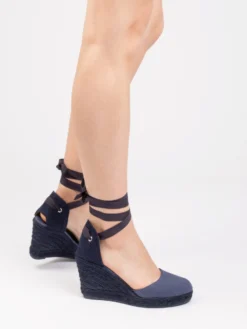 Punta chiusa in tela piquet, tallone chiuso in filato e corda.