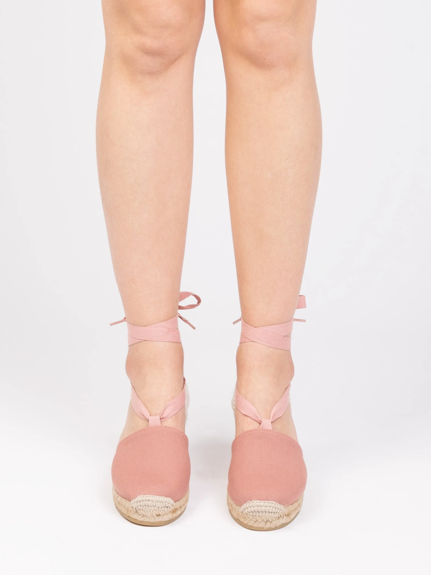 Punta chiusa in tela, tallone chiuso in filato e corda.