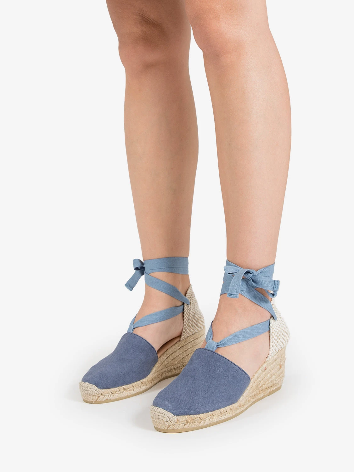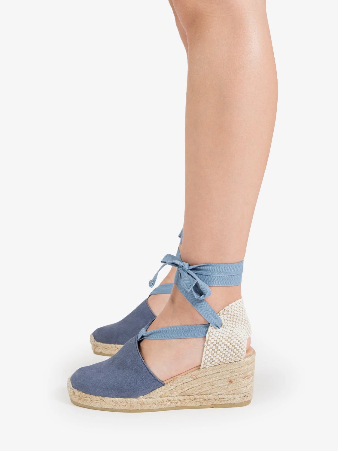 Punta chiusa in tela, tallone chiuso in filato e corda.