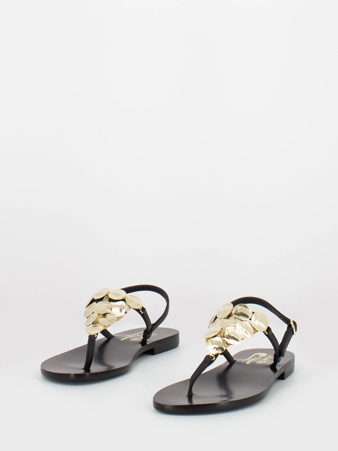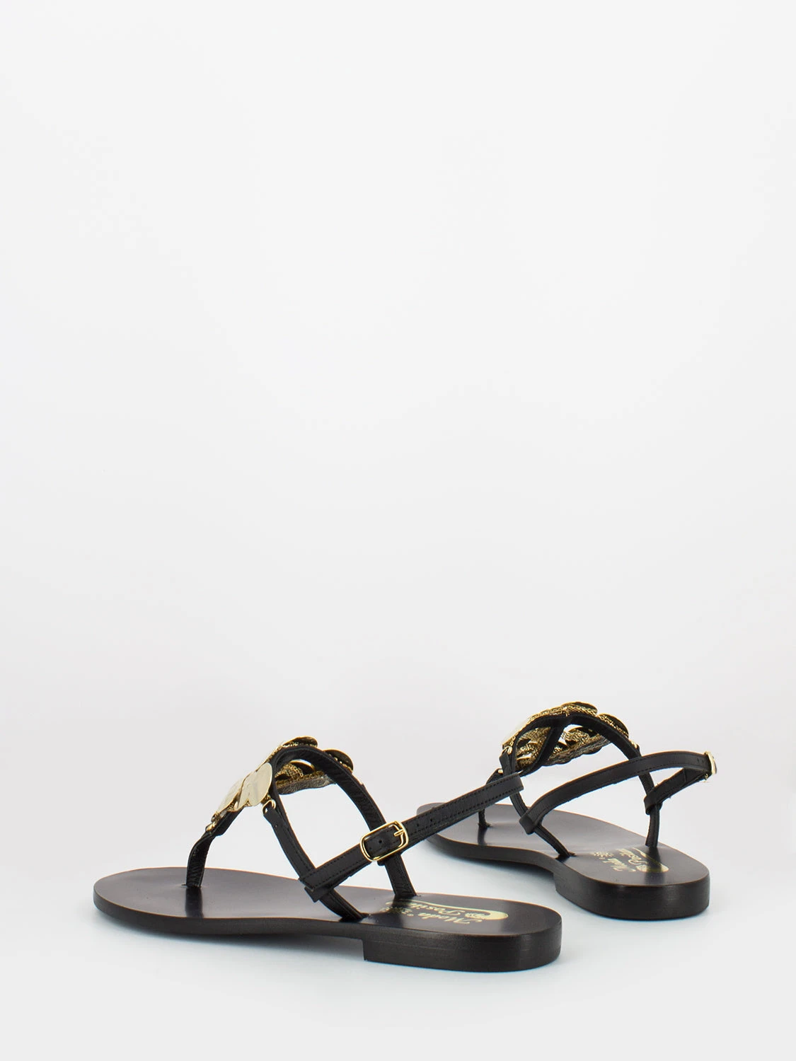 Parte sul dorso a T e cinturino con fibbia alla caviglia.