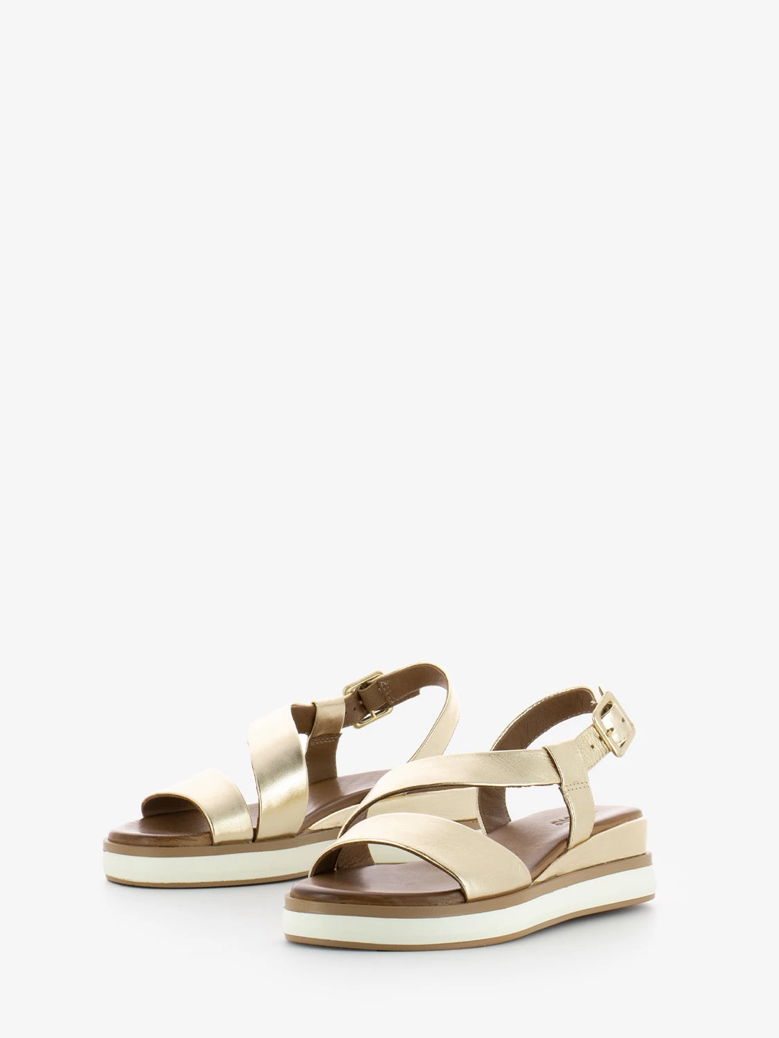 Tomaia in pelle laminata, pianta in pelle e fondo sintetico.