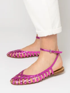 Pelle laminata a fasce sottili, pianta in pelle e fondo in cuoio.