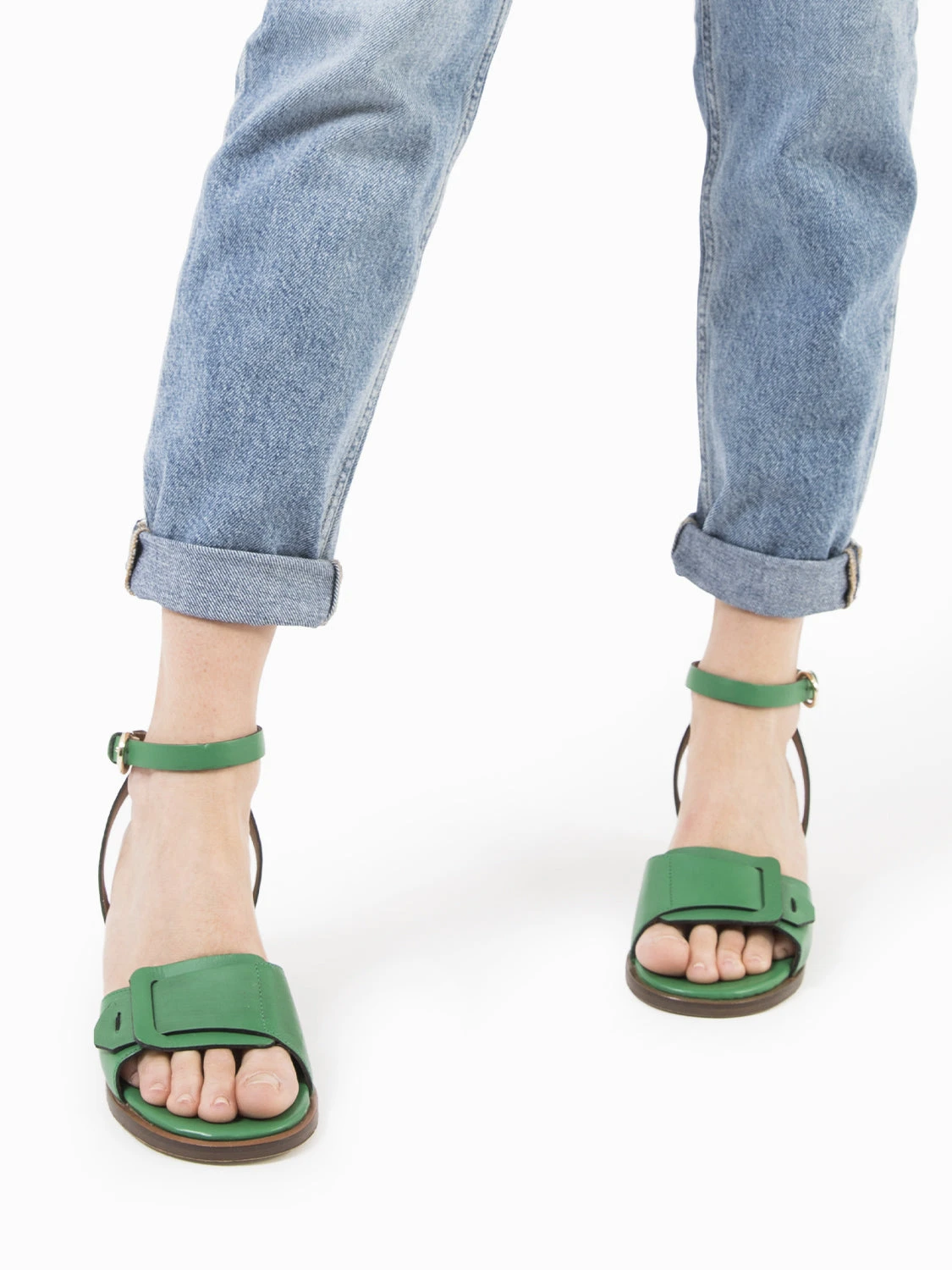 Pianta in pelle, cinturino con fibbia alla caviglia.