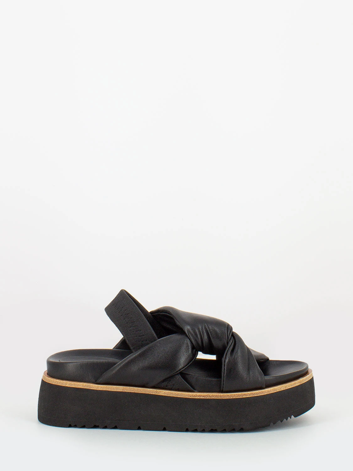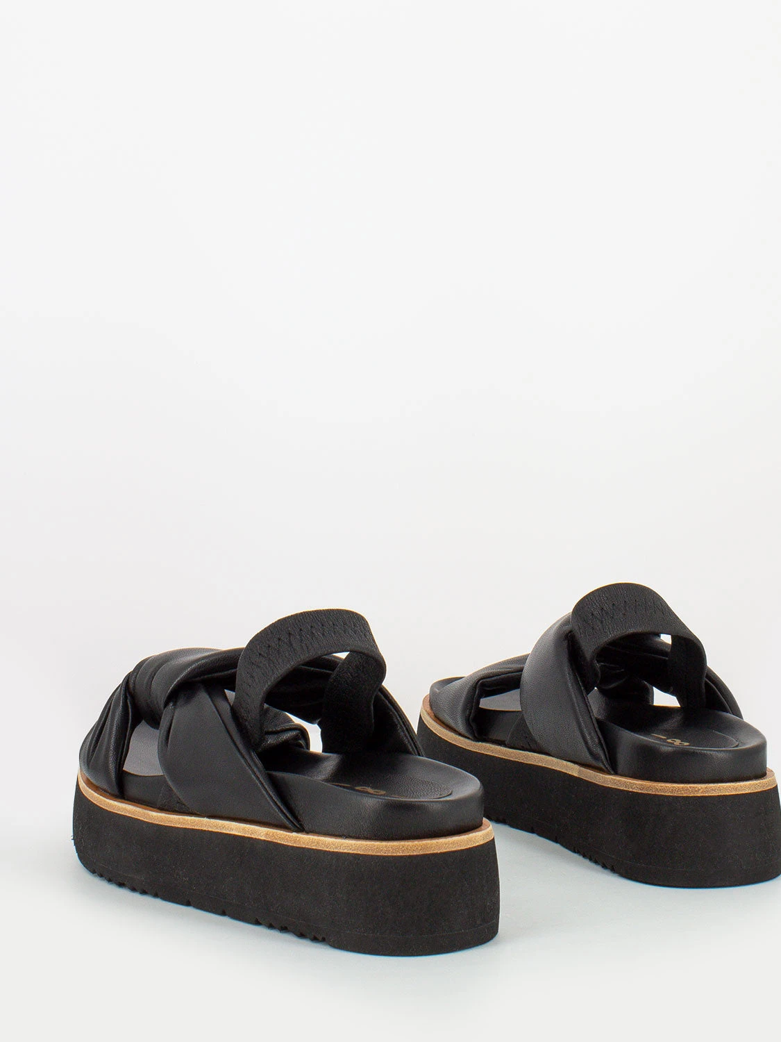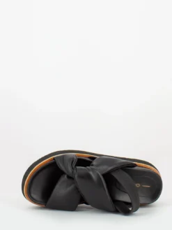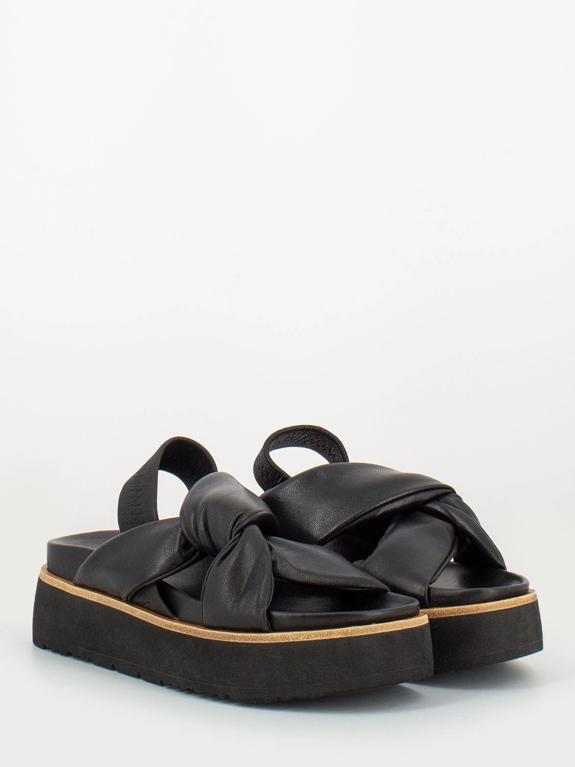 Cinturino elastico alla caviglia, due fasce annodate di lato.
