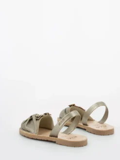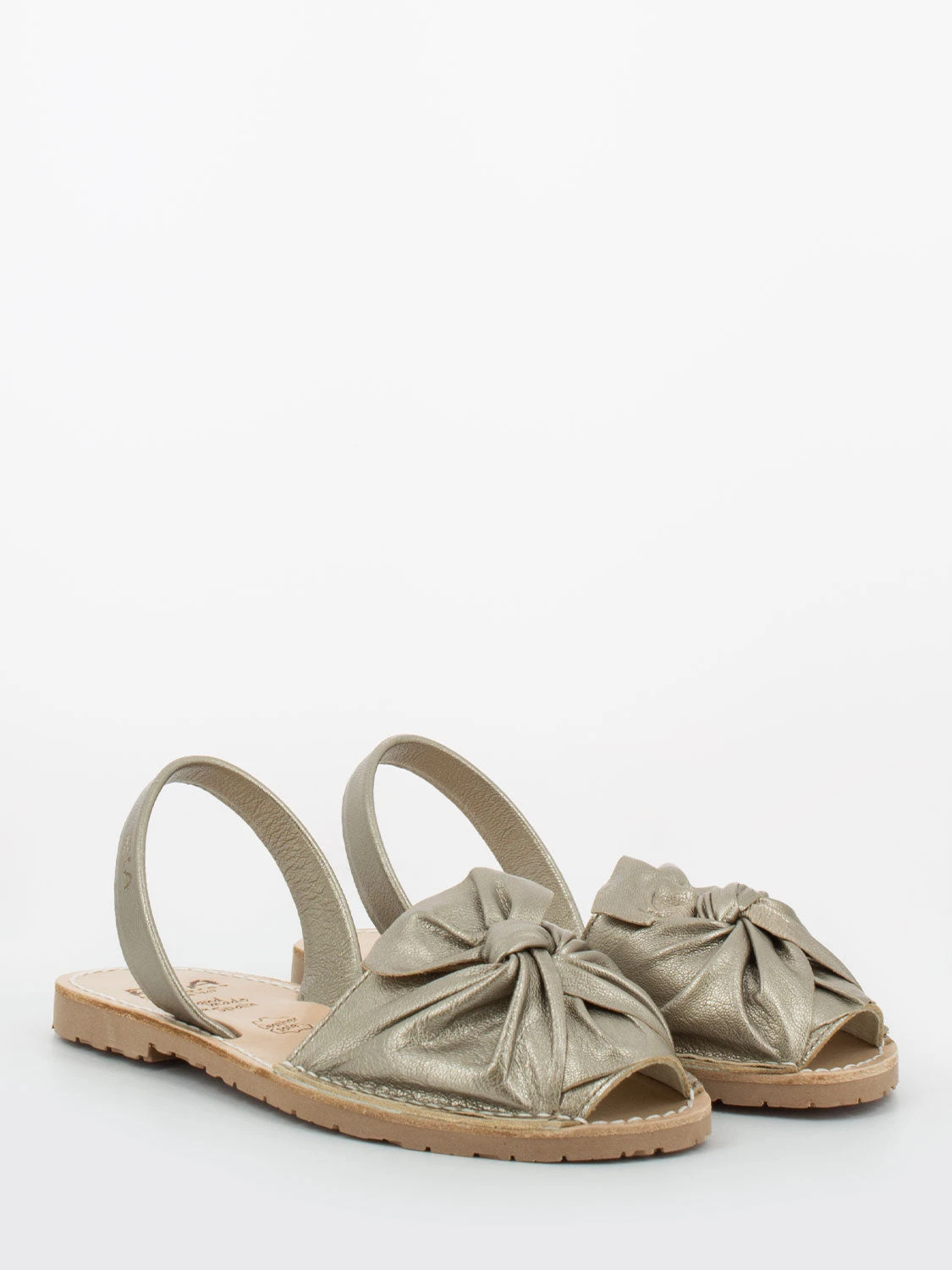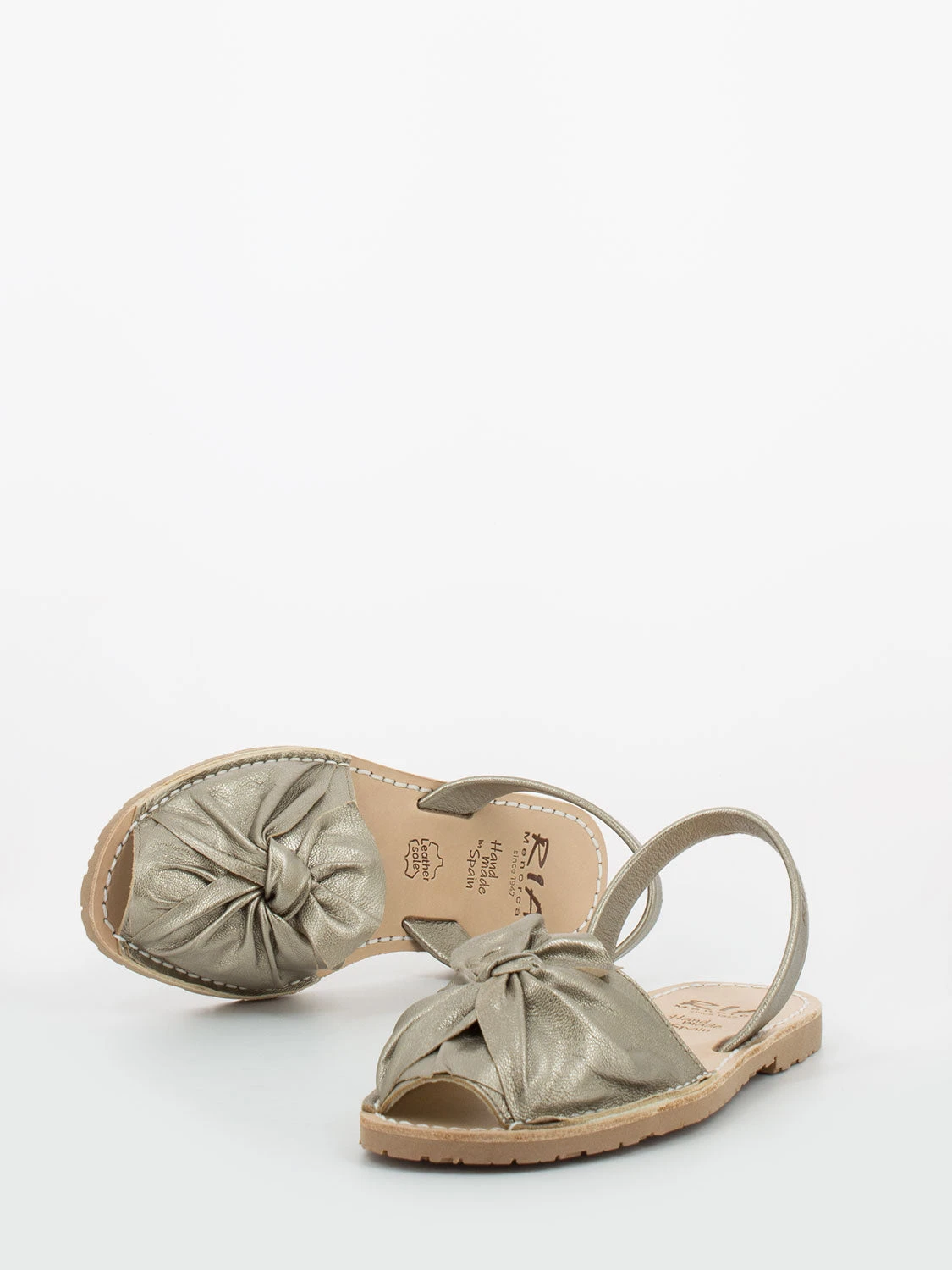 Fascia open-toe con fiocco e cinturino in nappa granata laminata.
