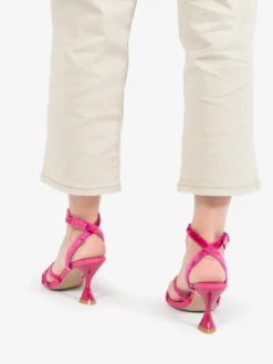 Fasce sottili in velluto, intrecciate sulla punta e sulla caviglia.