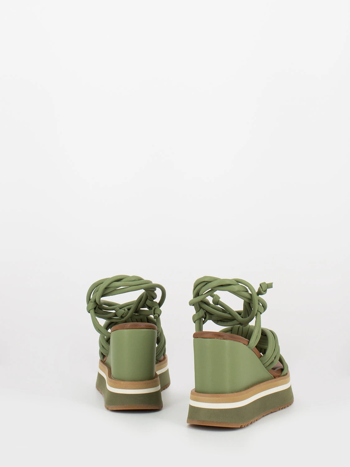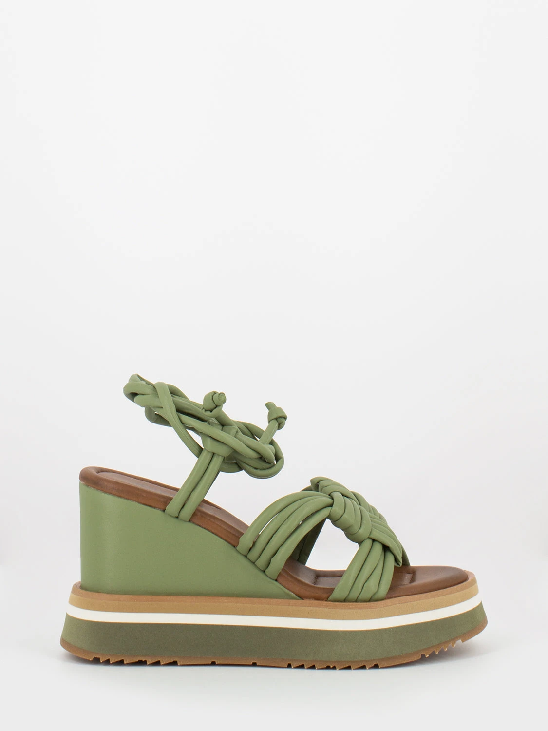 Fasce sottili in pelle imbottite ed intrecciate su dorso e caviglia.
