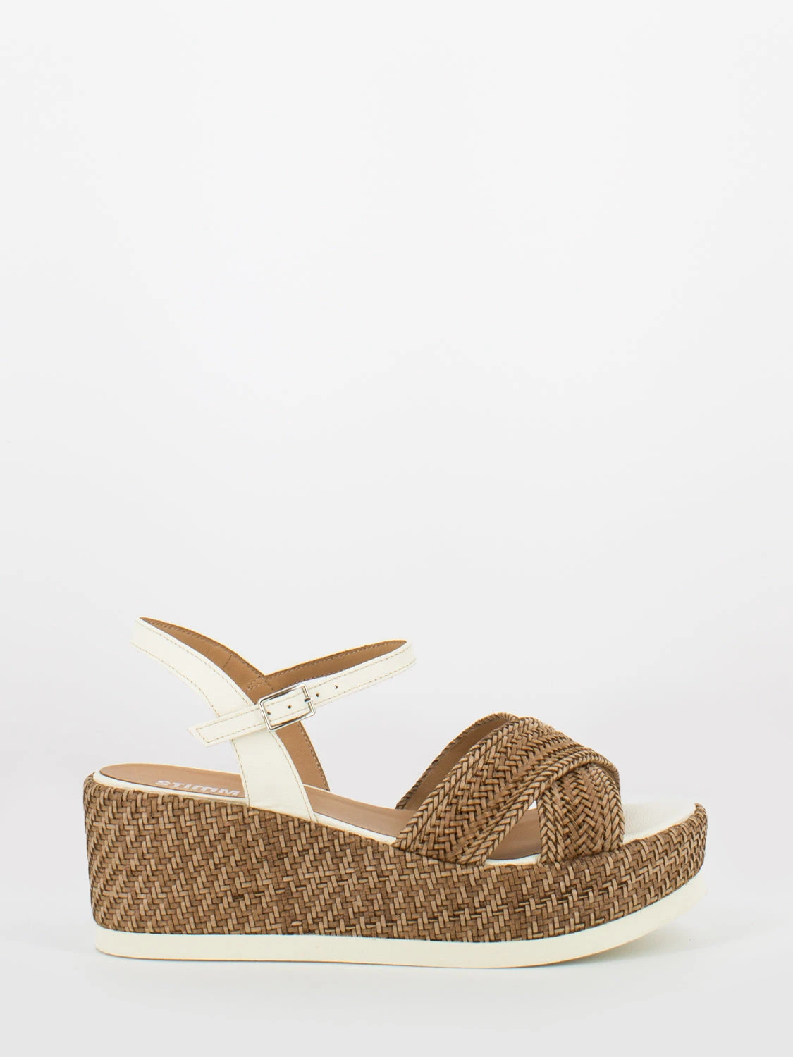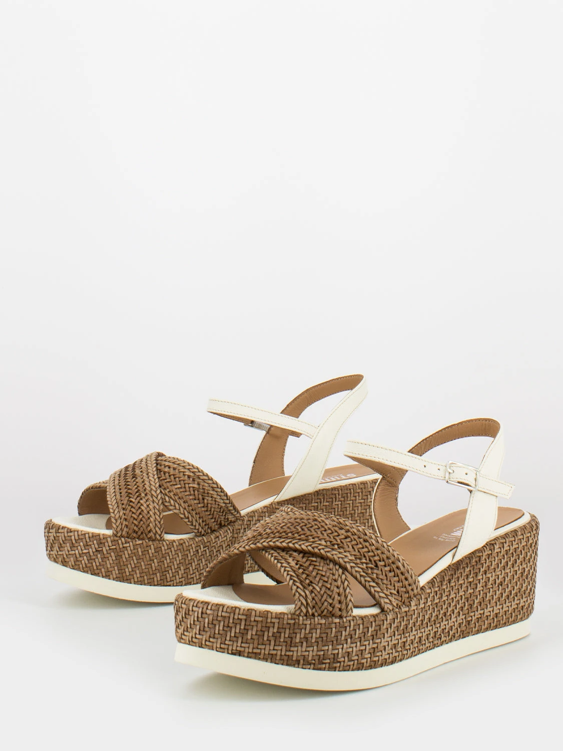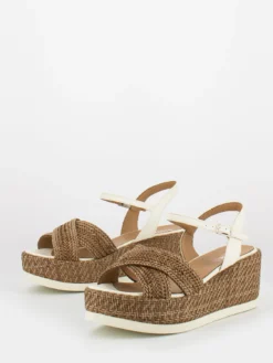 Due fasce incrociate ed intersuola con lacci intrecciati effetto raffia.