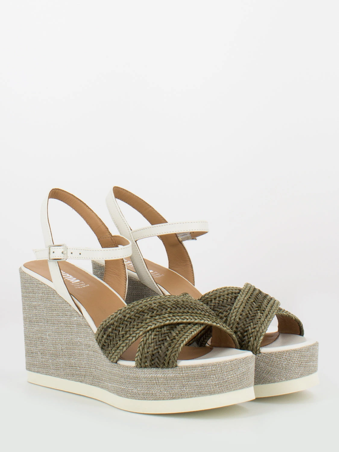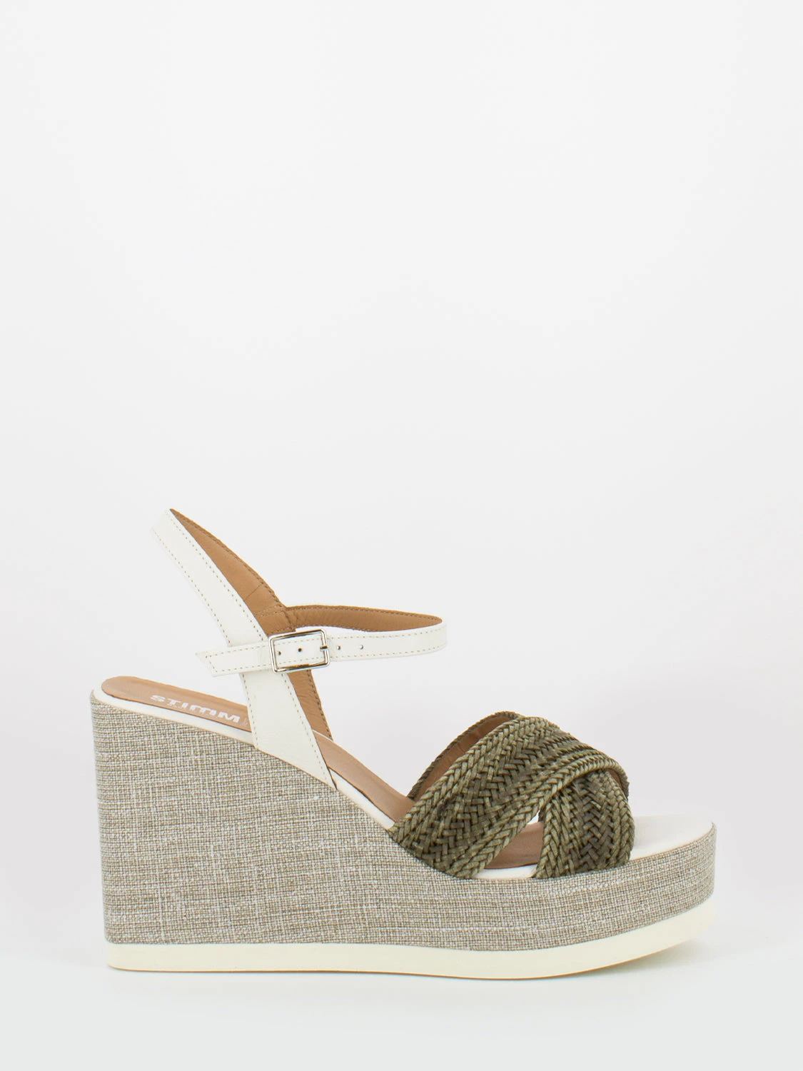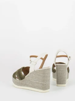 Due fasce incrociate a lacci intrecciati effetto raffia.
