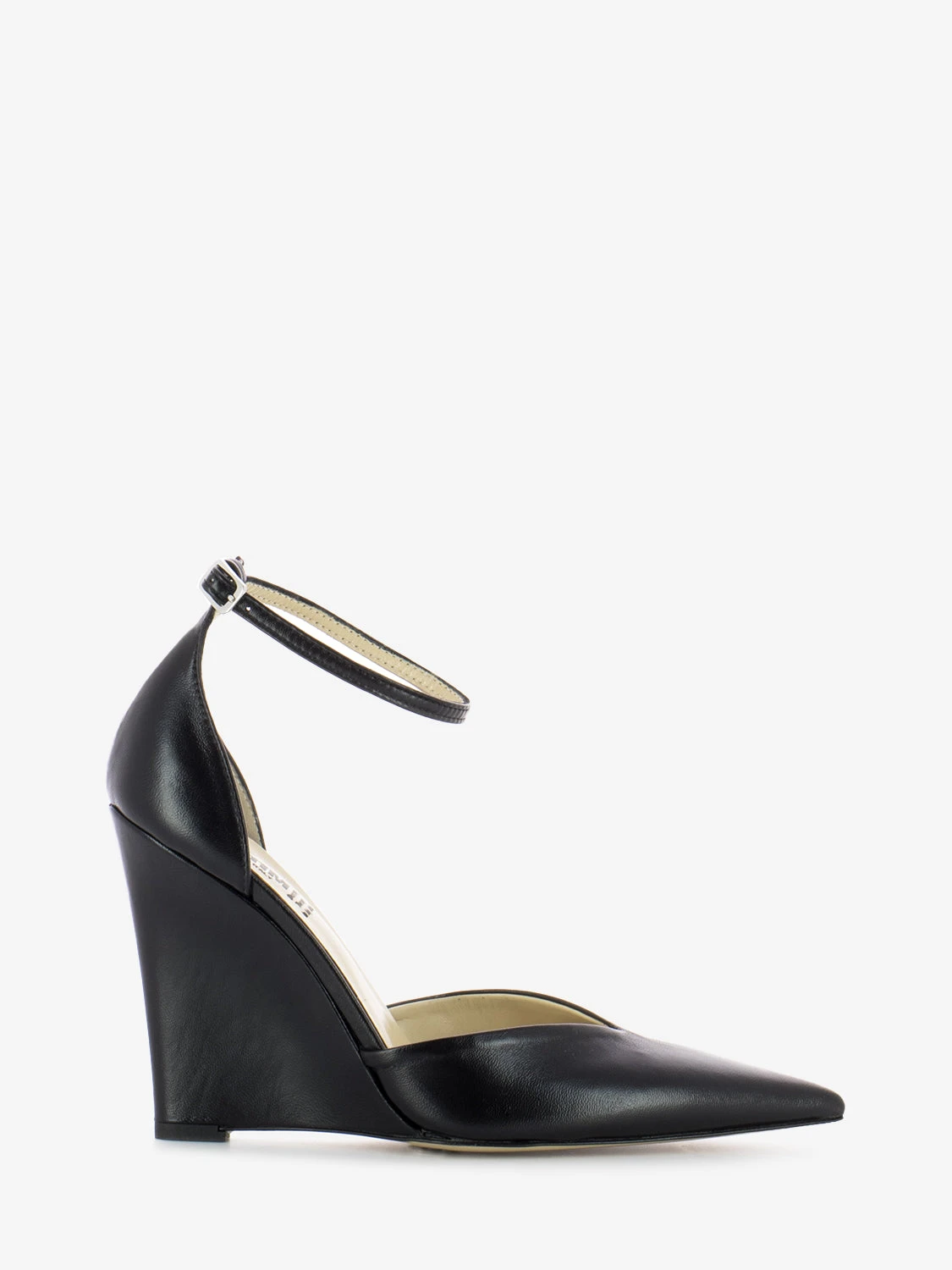 Tallone chiuso, cinturino con fibbia alla caviglia.