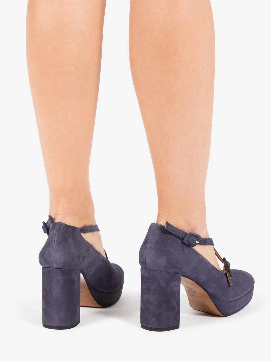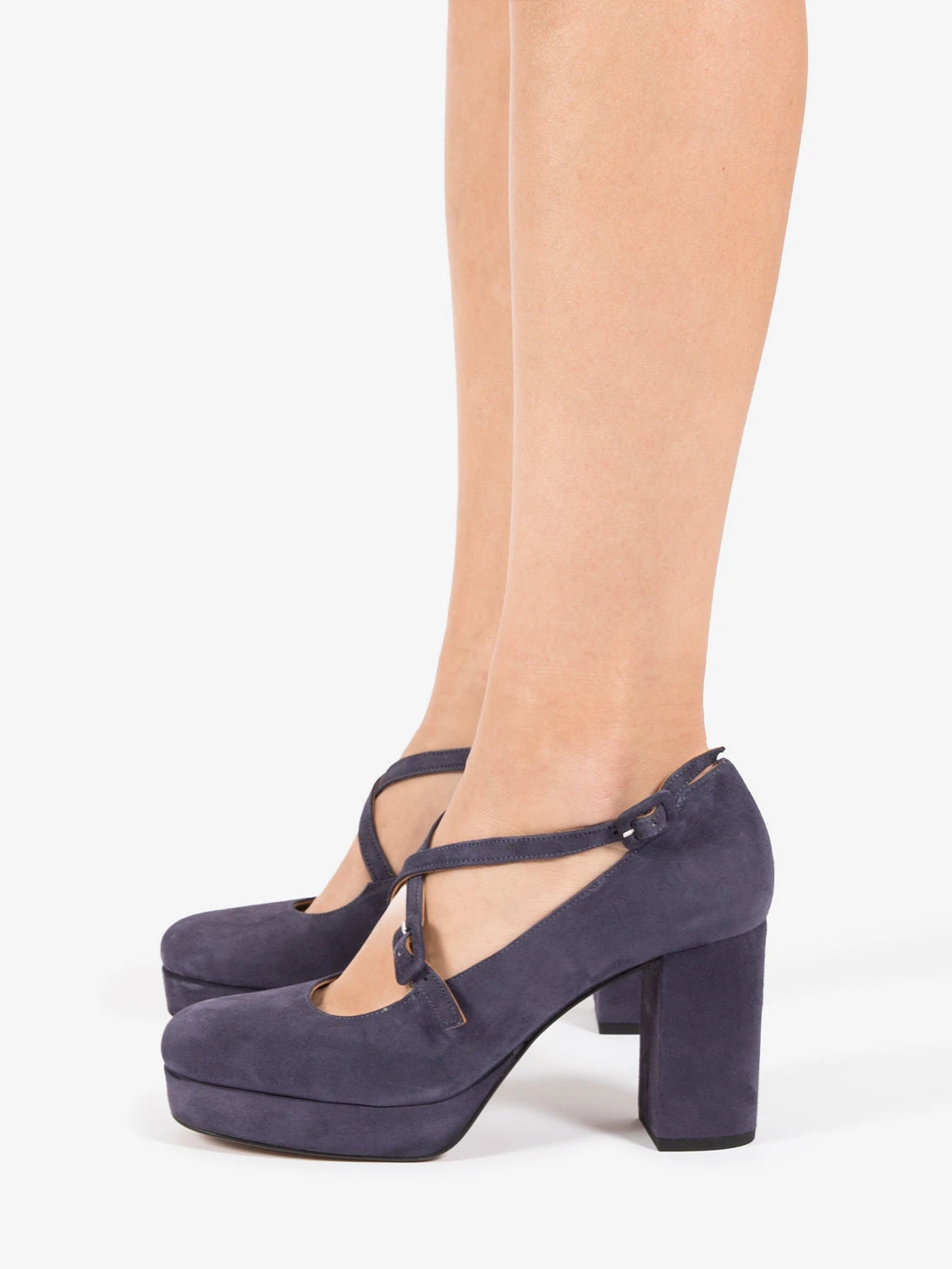 Fibbia e tacco rivestiti in suede.