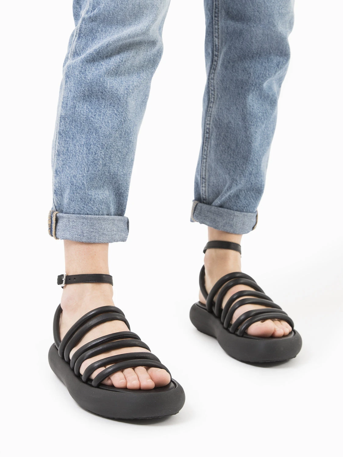 Fasce in nappa sul dorso, cinturino alla caviglia regolabile.